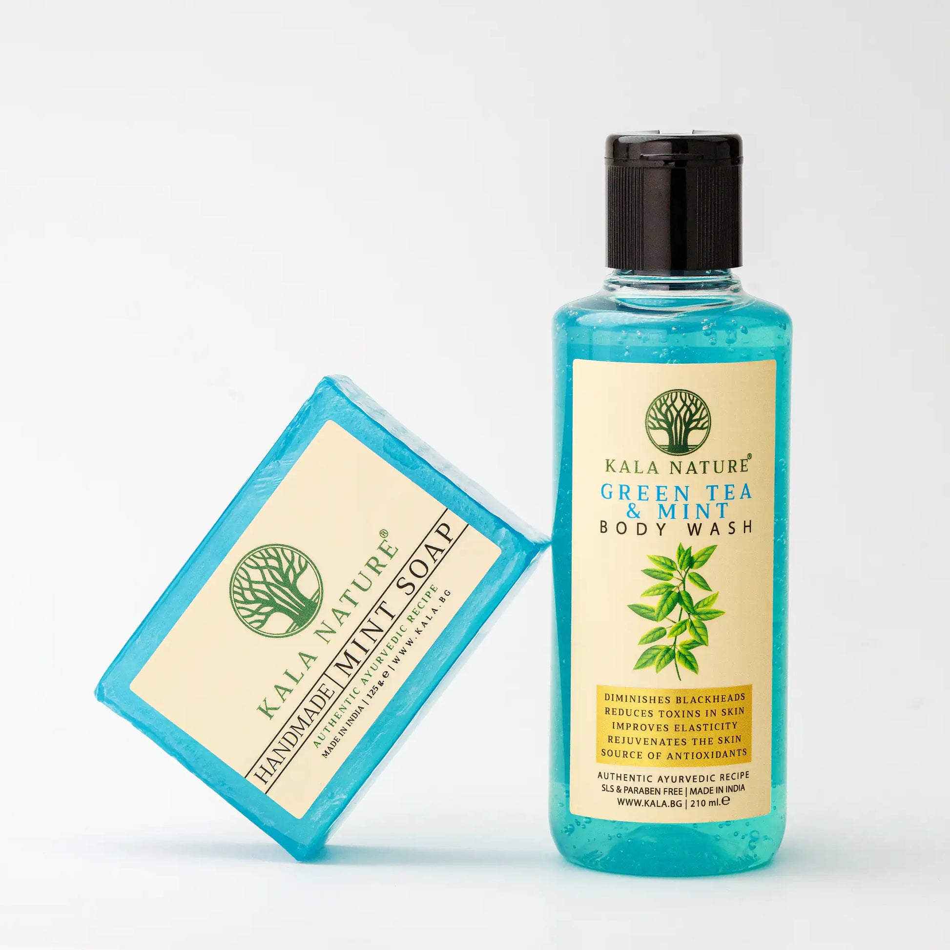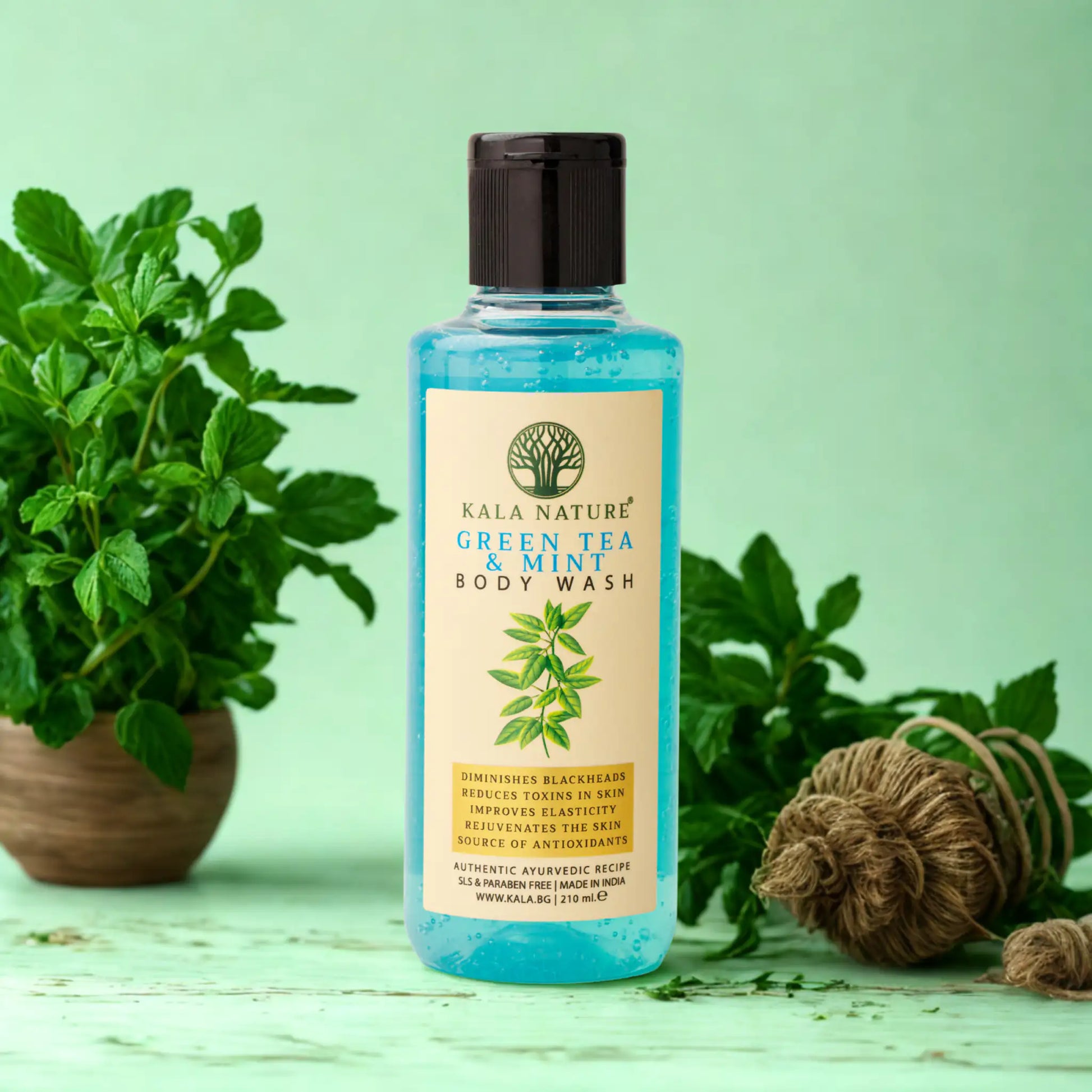 Витализиращ Аюрведичен душ гел със зелен чай и мента, който освежава, хидратира и подмладява кожата.